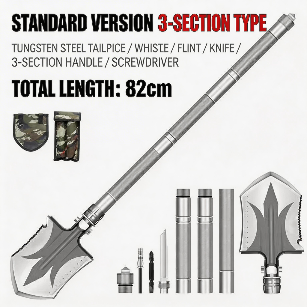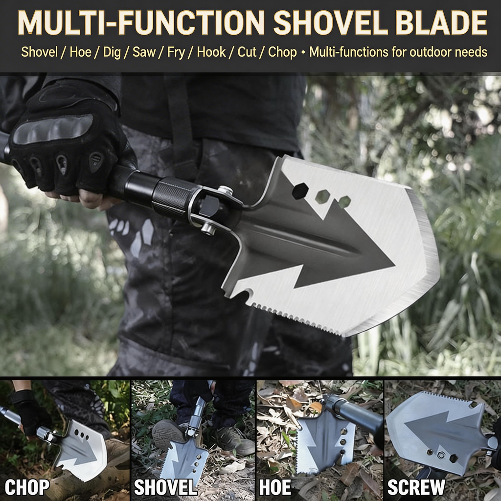 Stuck in mud? Emergency on the road? Farm work? This 1 shovel solves all your problems!High-Quality Manganese Steel, Foldable & Portable, 10+ Functions in 1 Tool